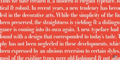 The result is a typeface that reads as unmistakably high-contrast and classical, yet avoids the brittle fragility that can make pure Didone designs difficult to use at text sizes. Porchez's characteristic attention to proportion and spacing produces a Didone that is both visually dramatic and functionally reliable.