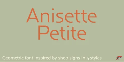 Anisette is a geometric display typeface designed by Jean Francois Porchez and published by Typofonderie. The design combines Art Deco-influenced geometric construction with contemporary refinement, creating a distinctive display face that evokes the architectural lettering and poster typography of the early 20th century.
