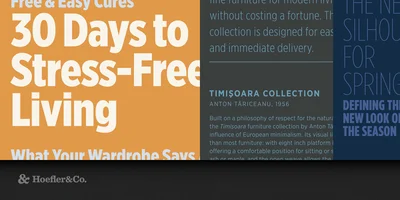 - Editorial design: Works across headlines and sophisticated body text in magazines