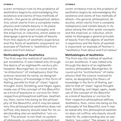 Styrene A is the more conventional version suitable for text and display. Styrene B pushes the geometric concept further with more exaggerated proportions, better suited for display-only use.