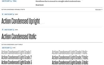 Action Condensed and Graphik are both sans-serif typefaces sharing a editorial foundation. Where Action Condensed leans condensed, bold, Graphik brings neo-grotesque, modern. Compare which suits your Editorial project.