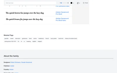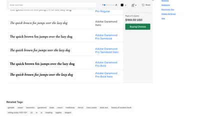 Adobe Garamond and Minion Pro are both serif typefaces sharing a elegant foundation. Where Adobe Garamond leans retro, Minion Pro brings old style, modern. Compare which suits your Books project.
