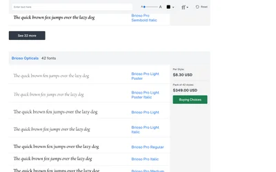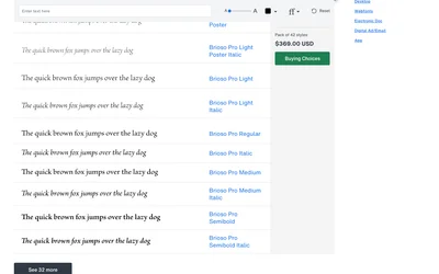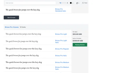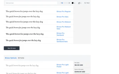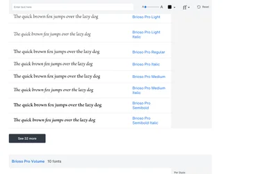 Brioso Pro and Minion Pro are both serif typefaces from different design traditions. Where Brioso Pro leans script, warm, Minion Pro brings old style, elegant. Compare which suits your Editorial project.
