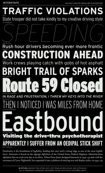 Calibre and Interstate are both sans-serif typefaces sharing a readable foundation. The two share 68% design similarity overall. Compare which suits your Branding project.