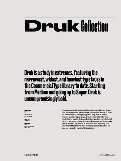 Druk and Milkshake are both display typefaces sharing a bold foundation. Where Druk leans condensed, editorial, Milkshake brings script, retro. Compare which suits your Display project.