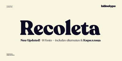 Heldane and Recoleta are both serif typefaces sharing a display foundation. Where Heldane leans editorial, elegant, Recoleta brings rounded, retro. Compare which suits your Editorial project.