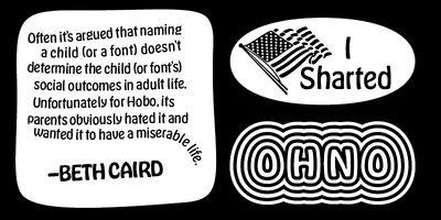 Hobeaux and Milkshake are both display typefaces sharing a retro foundation. Where Hobeaux leans art deco, expressive, Milkshake brings script, bold. Compare which suits your Branding project.