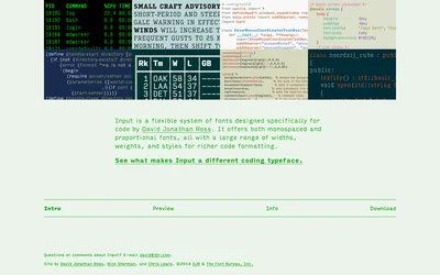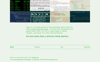 Input Mono and Menlo are both mono typefaces sharing a monospace foundation. Where Input Mono leans readable, Menlo brings tech. Compare which suits your Code project.