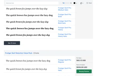 Literata is a popular open-source alternative to Frutiger Serif's humanist design. At 66% similarity, Literata delivers a editorial, readable aesthetic. Compare which works better for editorial and books projects.