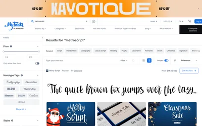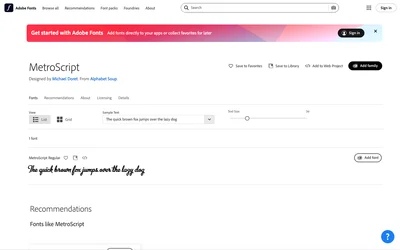 Pacifico is a popular open-source alternative to Metroscript's script design. At 70% similarity, Pacifico delivers a playful, friendly aesthetic. Compare which works better for branding and packaging projects.